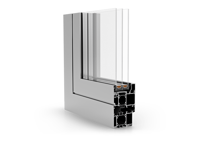 Decalu 88 Hidden window with concealed sash, the COR Vision Plus sliding system and the Despiro aluminium doors.